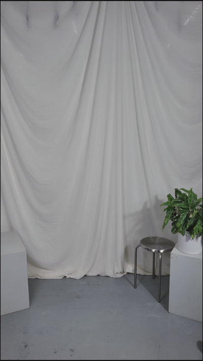 Two people sitting on a stool in a studio setting with photography equipment.